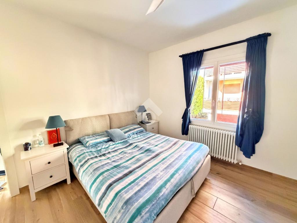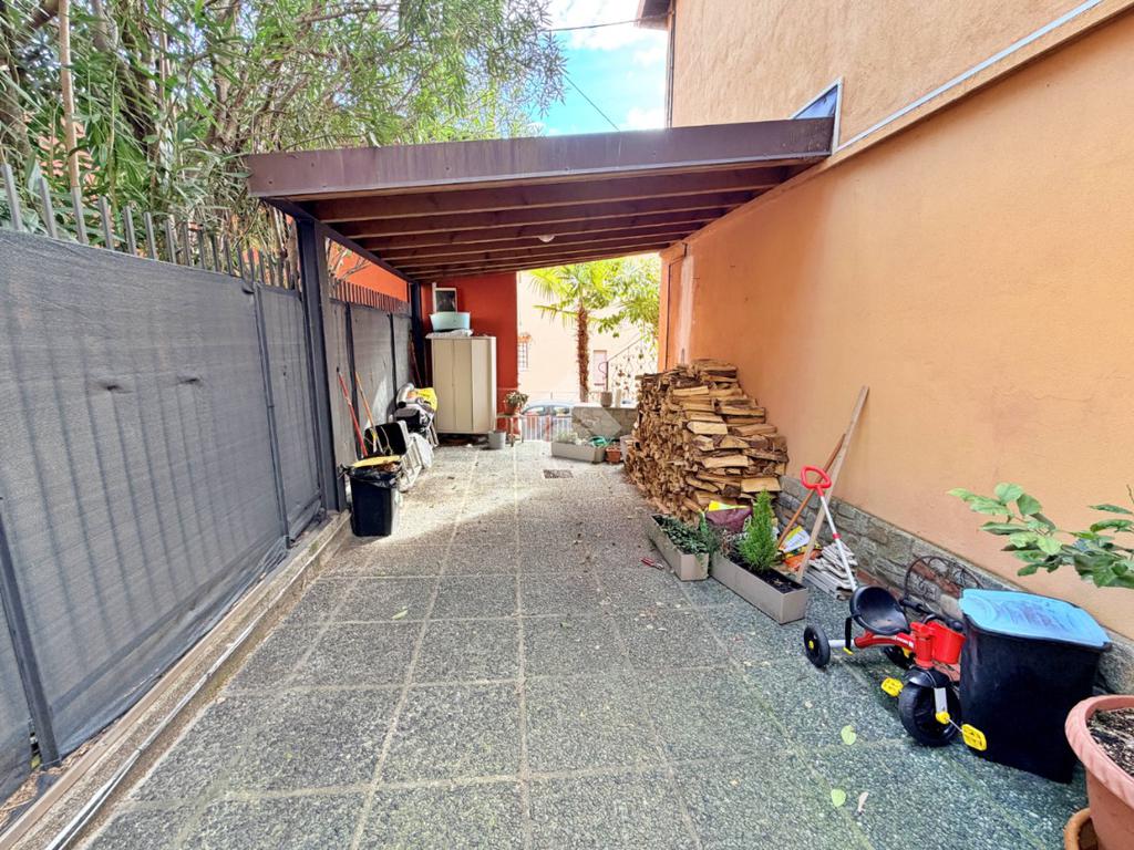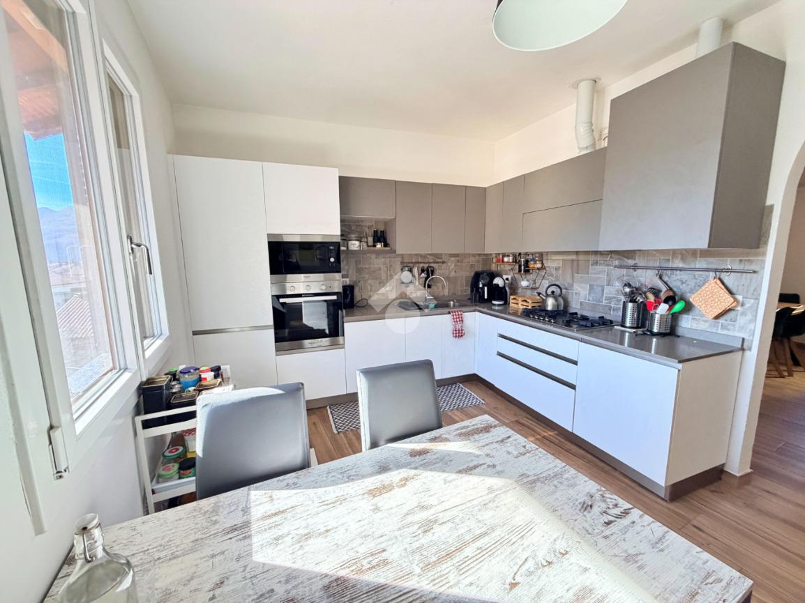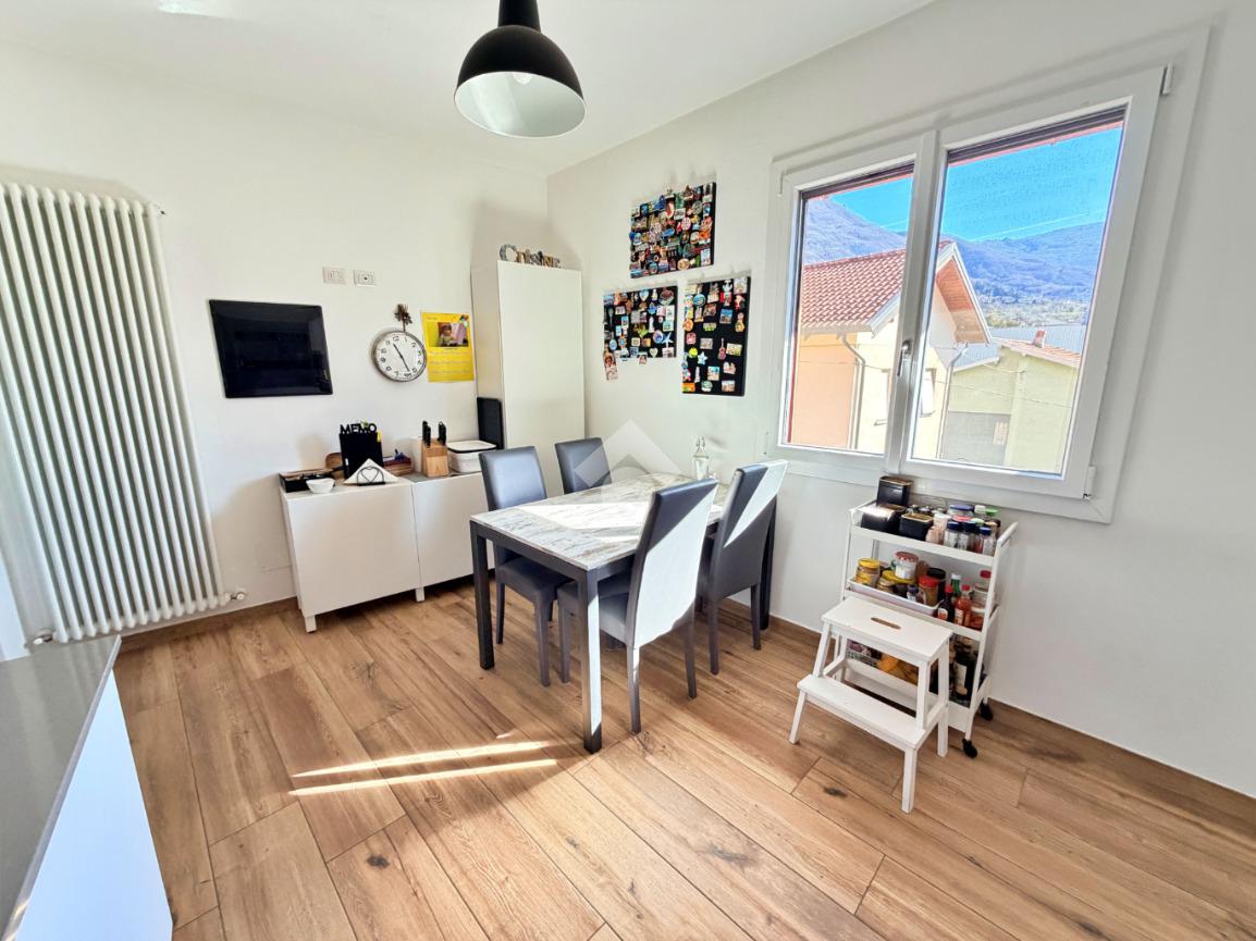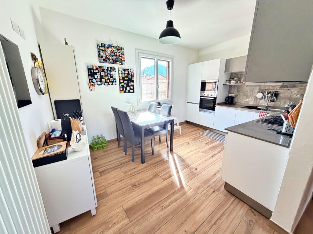Mandello- In posizione centrale, in contesto bifamiliare senza spese condominiali, appartamento al primo ed ultimo piano completamente ristrutturato pochi anni fa. Con piazzale di proprietà parzialmente coperto che può fungere da parcheggio per diverse auto, da cui si accede anche ad un grazioso locale accessorio. L'appartamento è stato ristrutturato con gusto, e presenta finiture sobrie e moderne, l'accesso avviene tramite una breve scala che da sul balcone privato. Dall'ingresso dotato di porta a vetri (doppi e antisfondamento) per conferire maggiore luminosità al disimpegno, si accede al soggiorno spazioso, dotato di finestre e camino di ultima generazione; la cucina, adiacente al soggiorno, è perfettamente abitabile e funzionale; le due camere sono di dimensioni sopra la media e grazie alla forma regolare possono essere arredate con facilità. Il bagno, anch'esso totalmente rinnovato e dotato di finestra, ha lo spazio per un'ampia doccia con led d'atmosfera e la lavatrice. I serramenti sono tutti di alta qualità, come il pavimento in gres porcellanato effetto legno e le porte interne. Infine, l'abitazione è dotata di climatizzatori a pompa di calore. Quest'abitazione si rivolge principalmente a chi cerca una soluzione già pronta da abitare, senza spese di gestione e in posizione comoda coi servizi del centro.